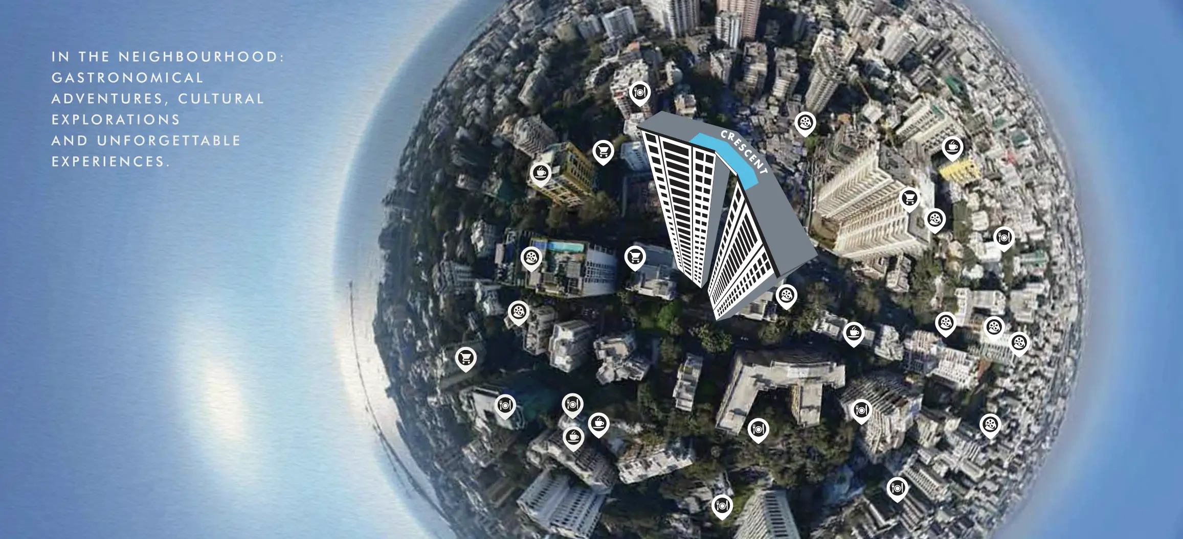 At Rustomjee Crescent we are creating an exceptional 1.2-acre gated estate, the only one of its kind in Pali Hill. Here, every detail is designed for the extraordinary. From world-class amenities to a like-minded community, Rustomjee Crescent is a seamless blend of luxury and nature. Brought to life by the finest international minds, our landscape and architecture partners: SOG Design and COEN International. And at its heart lies a true masterpiece: one of Mumbai's longest rooftop pools. Conceived to be more than just an architectural feat, this immersive experience mirrors the city's vibrant energy and elesant lifestyle. With an infinity-edge illusion, breathtaking panoramic views, and intelligent lighting that transforms from day to night, it's a space where exhilaration meets serenity. Whether you're diving in for a swim or hosting the most talked-about soirée in town, here, life is your canvas. Gather in the warmth of a home where elegance unfolds effortlessly. Let the grandeur of space and the quiet grace of soaring ceilings set the stage for cherished family moments. • SPACIOUS 3 AND 4 BEDROOM RESIDENCES • DUPLEX PENTHOUSES • OPTIMALLY DESIGNED BESPOKE LAYOUTS • FULL-HEIGHT FRENCH WINDOWS • AMPLE NATURAL LIGHT AND VENTILATION